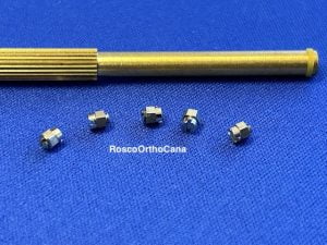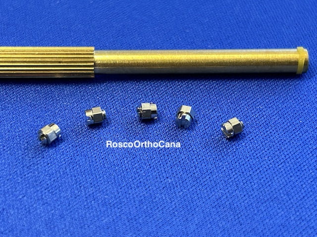 The sliding archwire locks can be slipped over the archwire and locked in place by turning the nut tight with the Double Ended Wrench. The locks can be loosened and moved when desired. An excellent option to maintain anchorage, distalize molars and provide a stop or hook when necessary.